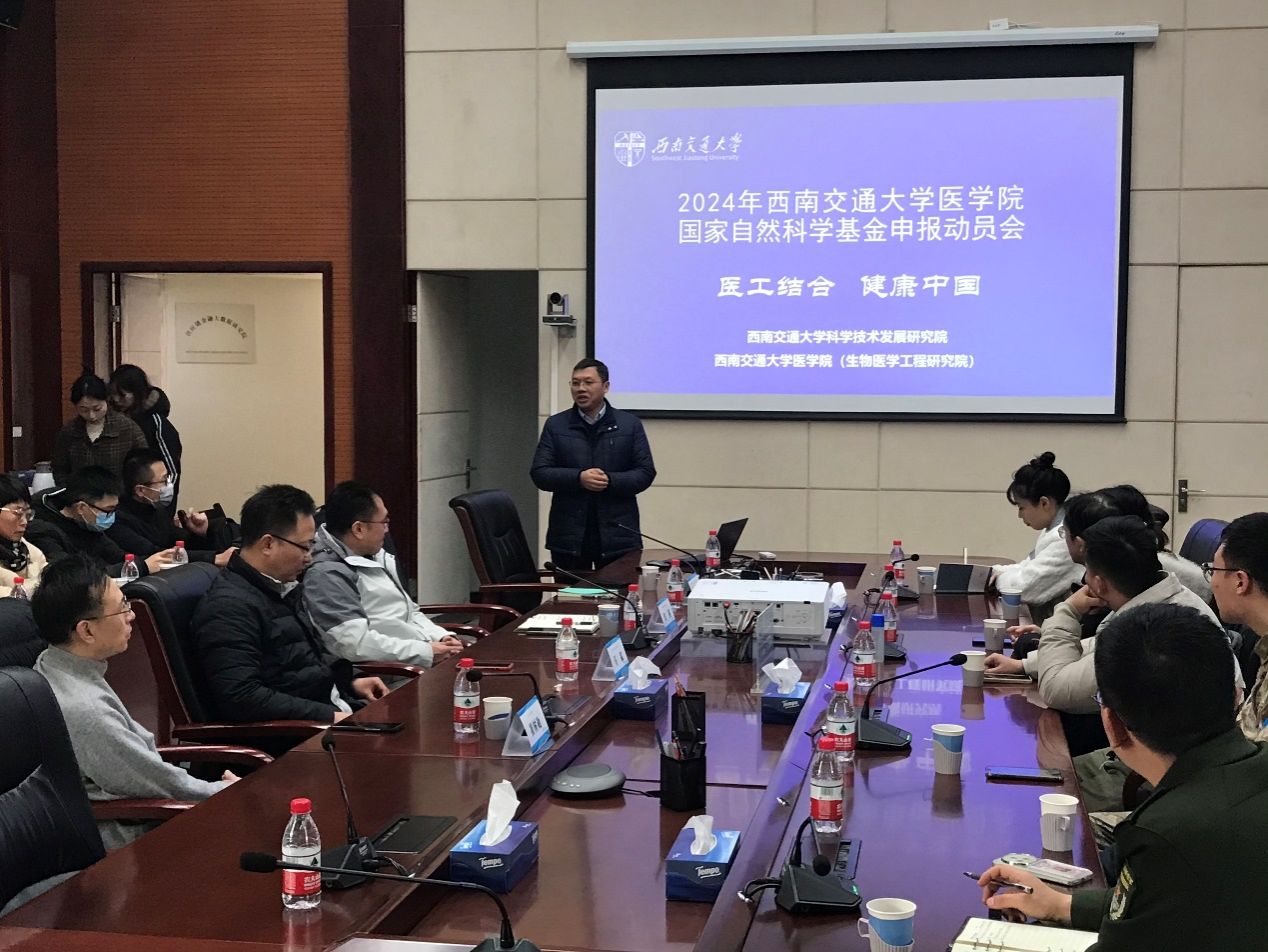 2023年12月27日下午,yl23455永利官网在九里校区1号综合楼会议室召开了2024年国家自然科学基金申报动员会。yl23455永利官网院长周绍兵教授、科学技术发展研究院(以下简称“科研院”)马霖副院长、化学学院副院长崔树勋教授、附属医院西部战区总医院田国部长出席了本次会议。两家附属医院(成都市第三人民医院和西部战区总医院)和yl23455永利官网教师共80余人参会。本次会议由yl23455永利官网周绍兵院长主持。