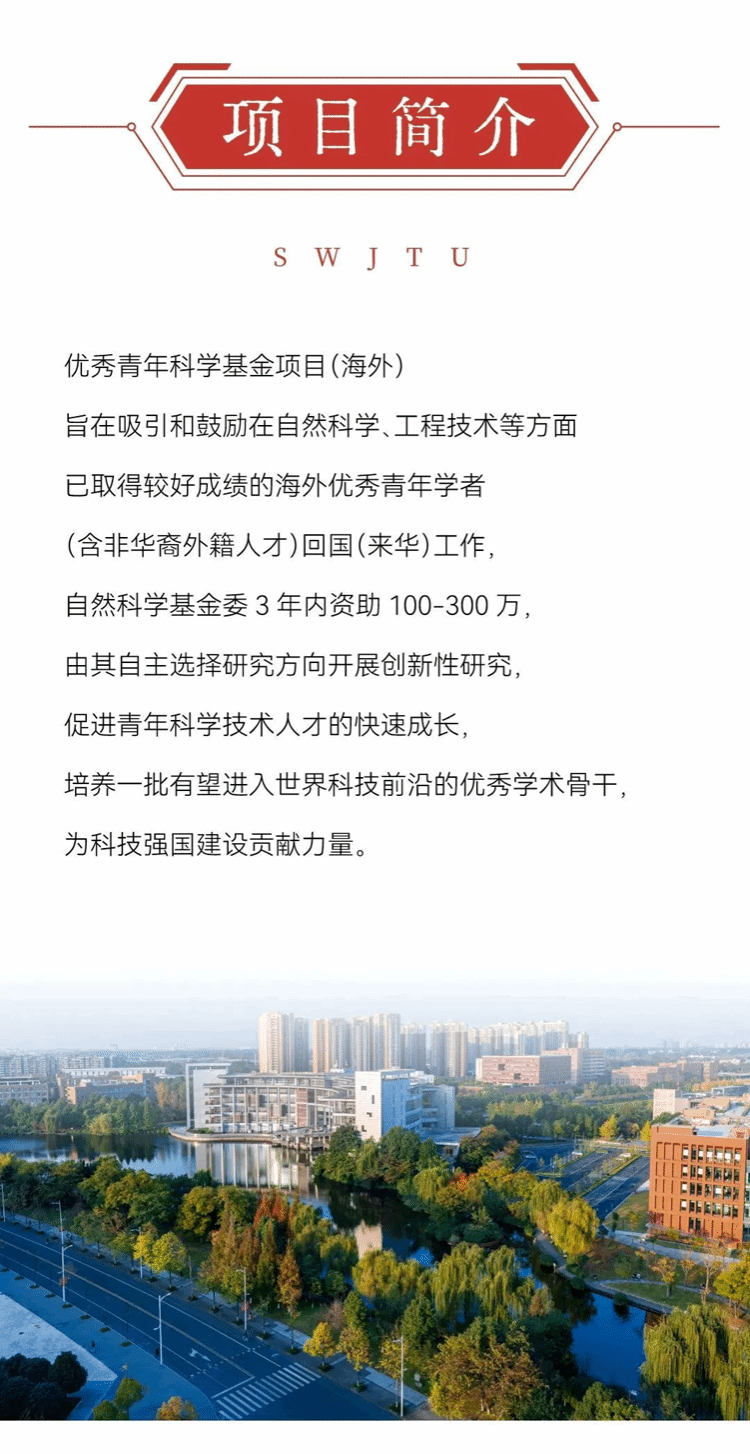 西南交通大学是教育部直属全国重点大学,国家首批“双一流”“211工程”“特色985 工程”“2011协同创新计划”重点建设并设有研究生院的研究型大学,坐落于中国历史文化名城、国家中心城市、“成渝地区双城经济圈”核心城市一一成都,现有九里、犀浦、峨眉、成都东部(国际)校区四个校区,共占地 5000 余亩。学校创建于1896 年,以“唐山交大”“唐院”之名享誉中外,素有“东方康奈尔”之美誉,毛泽东为学校题写校名。凡一百二十七年,学校矢志于卓越工程教育,以工见长、理工结合、文理渗透,引领中国轨道交通事业,打造“中国高铁”靓丽国家名片,创造了百余项“中国第一”乃至“世界第一”。