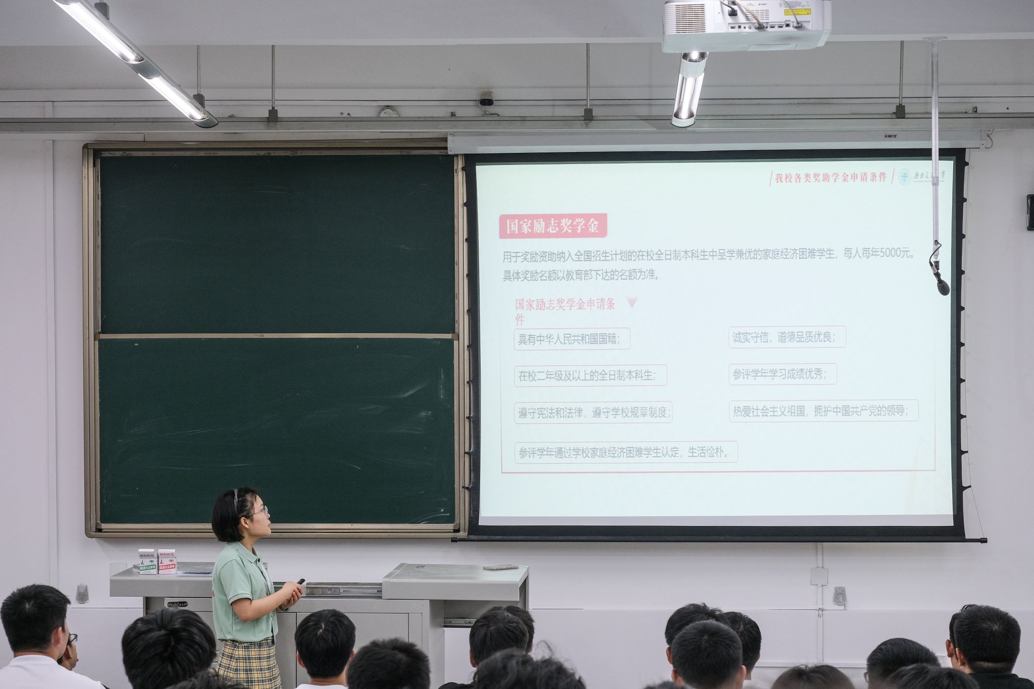 9月21日晚19:00,为使新生全面了解高校学生资助政策体系和我校资助体系与特点,激励新生强化主体意识和责任意识,学院邀请了交大“小资小助宣讲团”的“学生资助宣传大使”前往x2147开展新生资助政策宣讲。通过宣传大使的讲解,学生对学校的助学贷款、勤工助学、奖助学金等有了充分的了解。