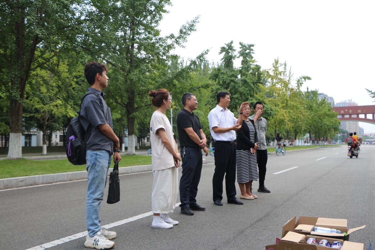 接着,院领导们为新生们发放了清凉的饮品作为慰问,现场气氛热烈、欢乐和谐。最后在李锦红书记的带领下,大家一起合唱了一首《团结就是力量》,在朗朗的歌声中,慰问接近尾声。
