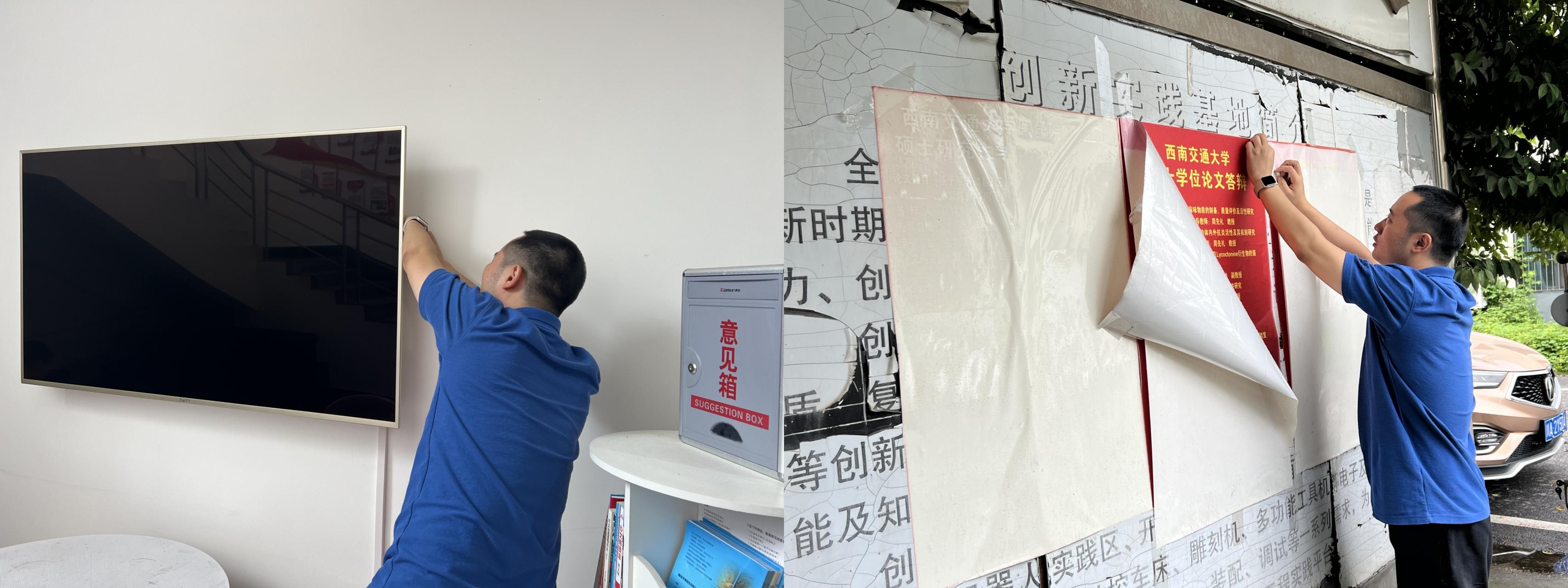 为进一步加强校园宣传管理,yl23455永利官网开展宣传品自查工作。主动检查了学院所属LED电子显示屏,切断电源及网络,收回遥控器由专人统一管理。自查了学院办公区、实验室区、学生园区的宣传公示栏,清除了各类过期海报和通知,积极营造文明高雅、和谐整洁的校园环境。
