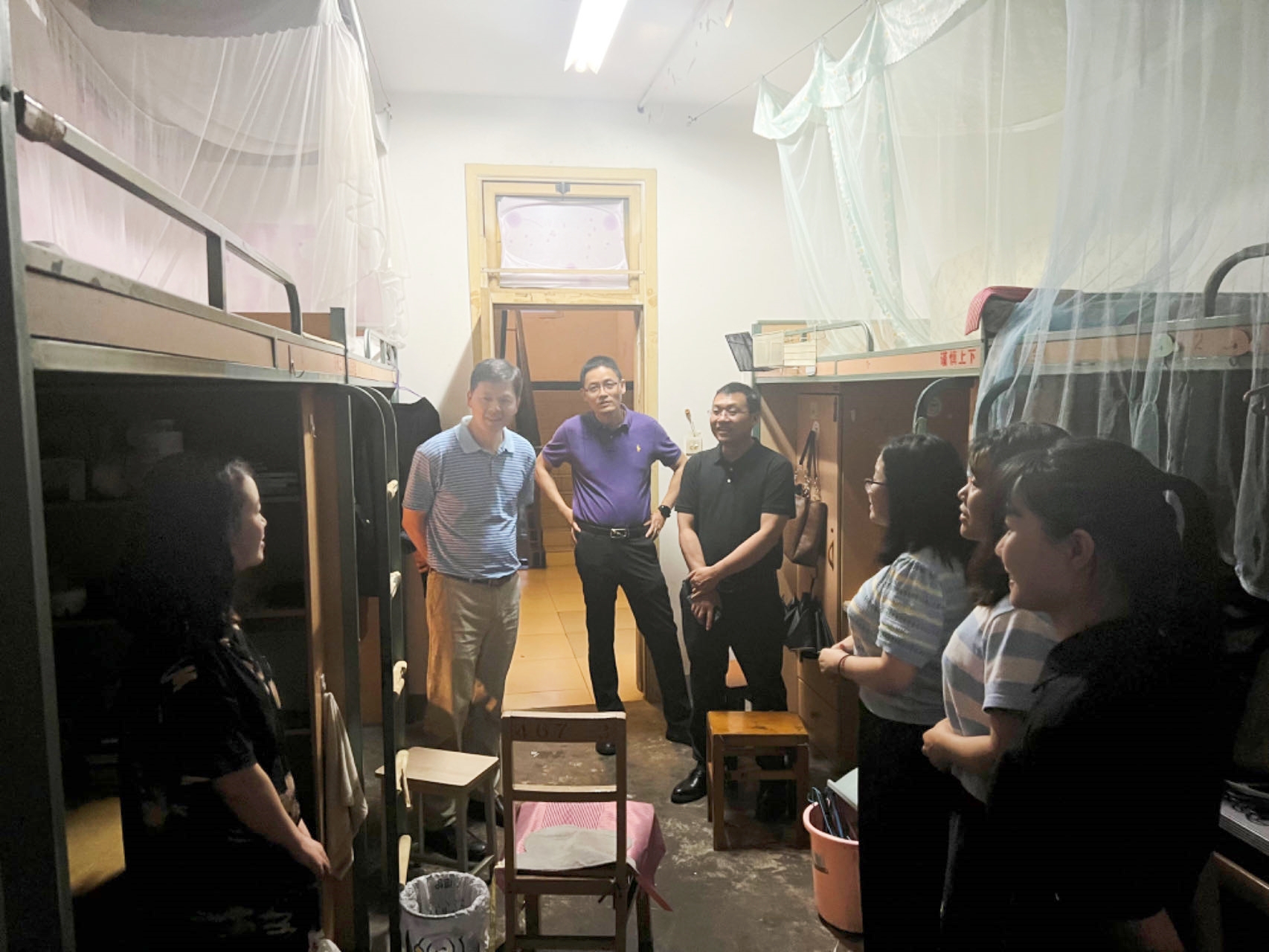 随后,领导和老师一行又来到了眷诚斋10栋5楼的yl23455永利官网毕业班女生宿舍。周绍兵院长、李锦红书记关切地询问了每一位毕业生的就业情况,她们中有留在三医院、六医院等继续规培的、有考博升学的、有正在考公的,学院领导对毕业生们有清晰的职业规划和好的毕业出路表示非常欣慰。李毅副部长与同学们也进行了亲切交流,对yl23455永利官网同学们在校园疫情防控中做出的突出贡献表达了感谢,也听取了同学们对校园文化生活、食堂宿舍环境等方面的意见和建议,并表示学校非常珍惜同学们提出的宝贵意见和建议,也将大力改善、优化九里校区校园环境,为同学们提供更舒适的学习生活空间。
