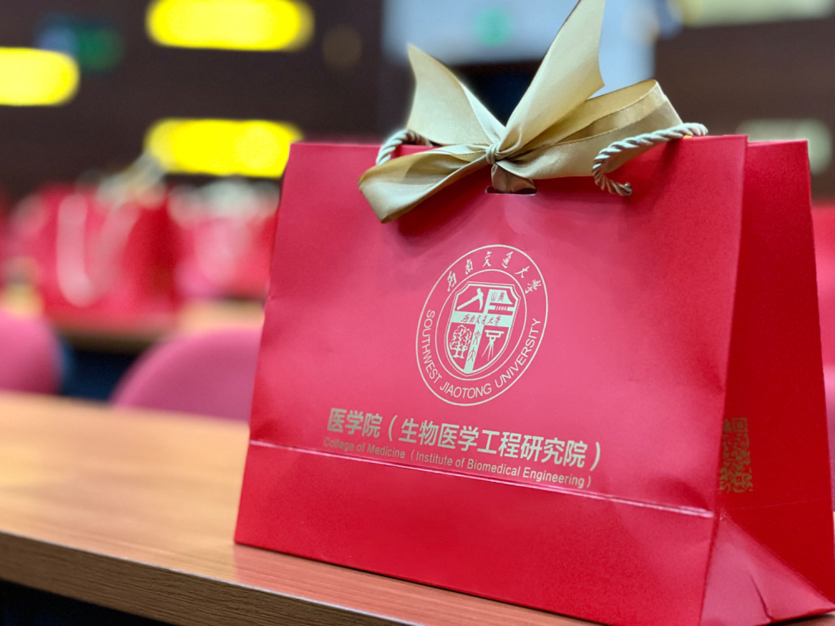 为表达学院对毕业生的深切祝福,副院长冷永祥、李暄、附属医院成都市第三人名医院副院长谢江,代表学院向毕业生赠送了毕业礼物。当同学们面对困难与挑战时,“问题不大”鼠标垫代表学院将永远为同学们加油打气,请同学们“放轻松、问题不大、可以解决”。学院赠送毕业生“热爱学习”定制书签,希望同学们多读书、读好书,保持终身学习的好习惯。学院还赠送毕业生“多功能接口”数据线,祝福同学们能够在各种环境之间自由切换、各种系统之间自由接入,努力做一名适应多变环境的复合型人才。