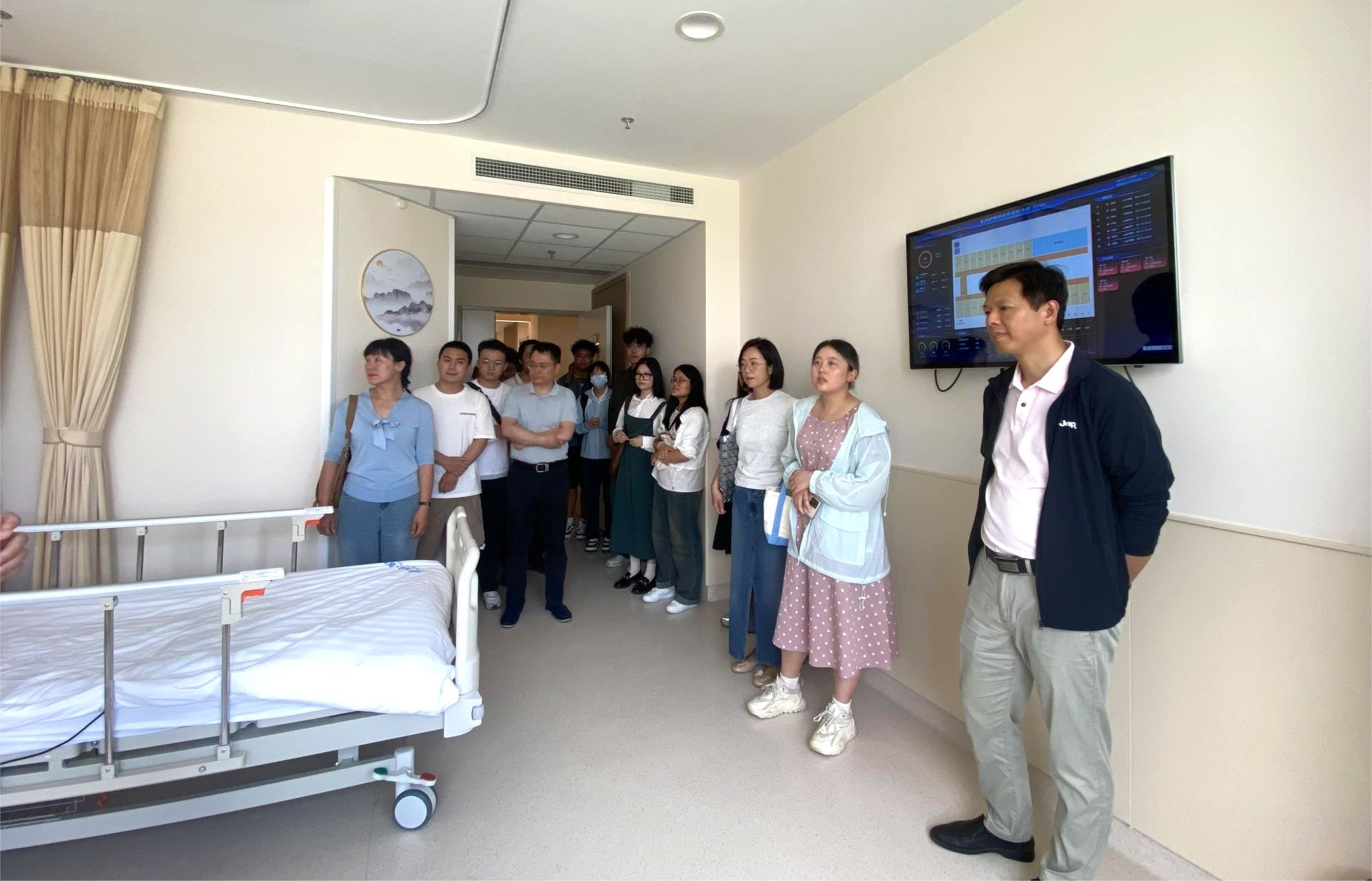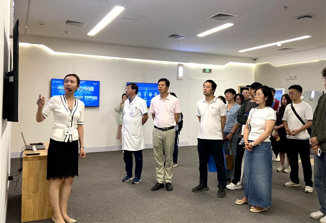 活动伊始,在京东方医院相关负责人的带领下,师生们参观了医院的门诊部、住院部及展览馆等重要区域,详细了解了医院的先进设施设备、诊疗流程以及医疗服务的创新实践。京东方医院作为国内领先的综合性医疗机构,其先进的医疗设备、人性化的服务理念和高效的管理体系给师生们留下了深刻印象。