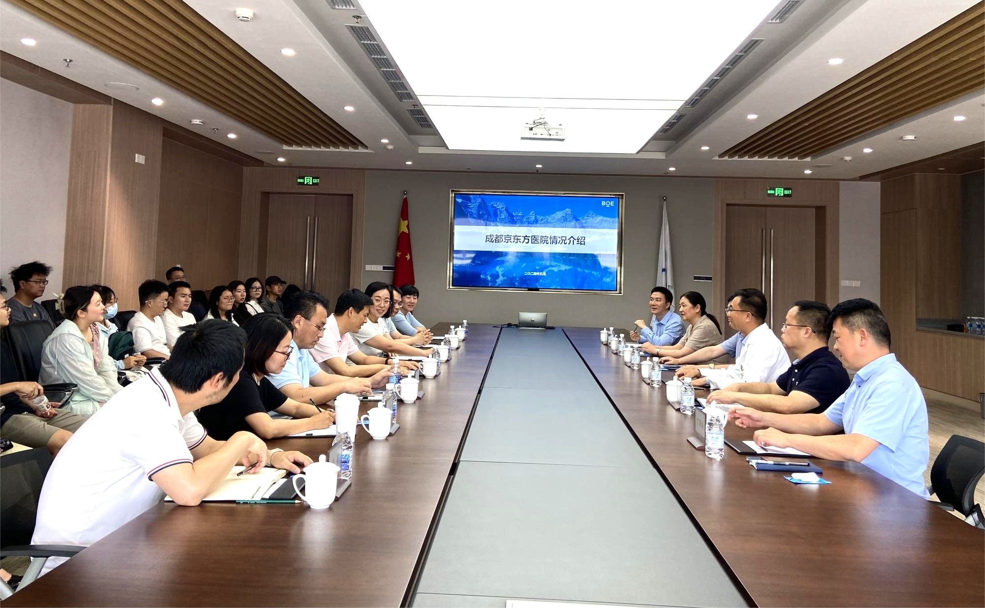 参观结束后,学院师生与京东方医院代表共同参与了座谈交流会。会上,京东方医院副院长王存邦首先介绍了医院的发展历程、人才需求和未来规划。随后,学院党委书记李锦红介绍了西南交通大学的建校历史、文化底蕴以及yl23455永利官网在人才培养、科学研究和社会服务等方面的成果和经验。最后,双方就如何深化校企合作、加强实践教学、拓展学生就业渠道等方面进行了深入交流和探讨。