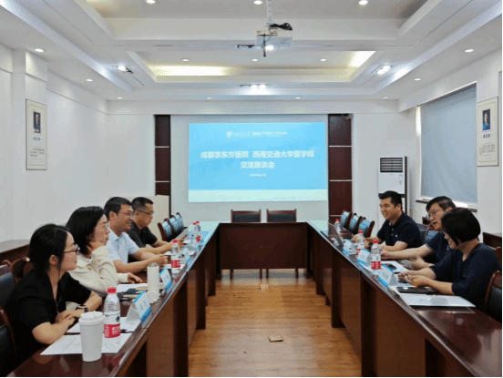 6月14日下午14:30,成都京东方医院副院长王存邦、科教部杨迎春、人力资源部吴浩邦一行,就科研合作、学生引聘等事宜开展交流座谈。yl23455永利官网院长周绍兵、副院长冷永祥、副书记于楠、院长助理郭泰林和苟雪参加了座谈。