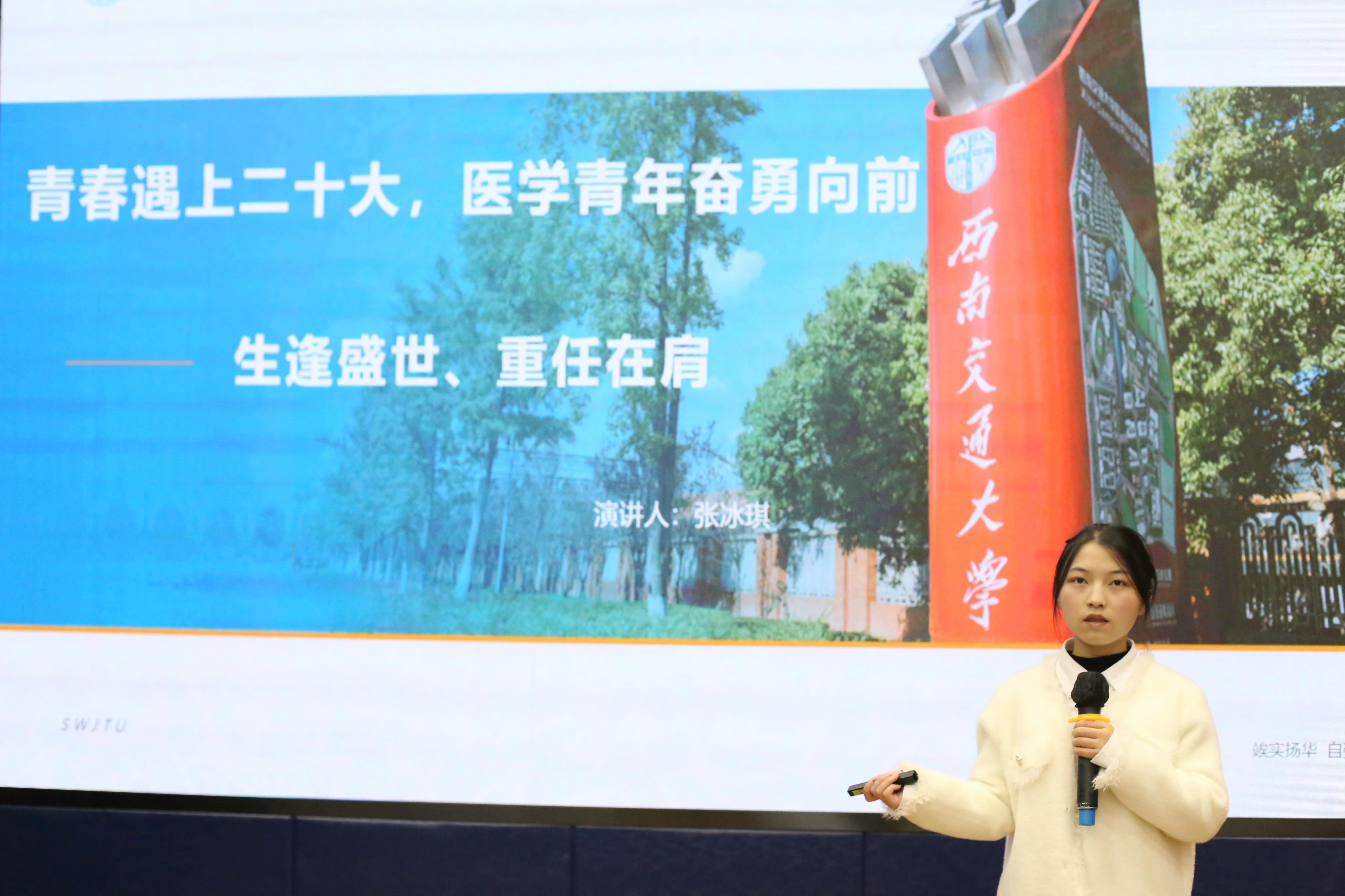 张冰琪同学讲述了自己对“检验医学”的认识从“成就感不高”到明白其对医疗卫生事业的重要意义,从而坚定“精医报国”人生理想的过程。