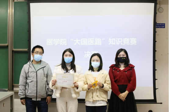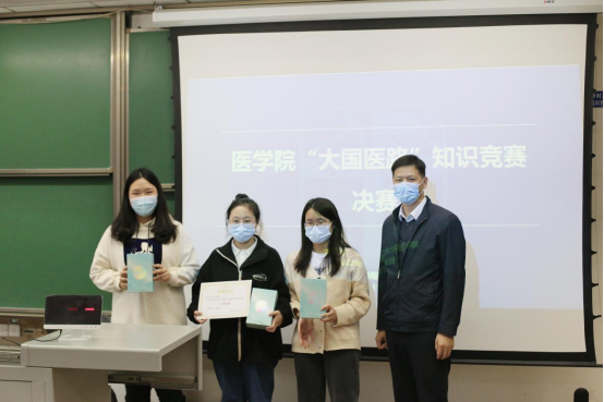最后,由李锦红书记、蔡俊俊老师、黄雪梅老师分别为参赛队伍进行了颁奖,并合影留念。至此,yl23455永利官网第一届“大国医路”知识竞答活动圆满结束。