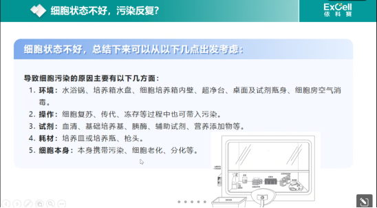 然后,李老师从多个方面入手,为同学们讲解了细胞培养实验技能相关问题,如原代细胞培养和建系中的植块法、酶消化法、密度梯度离心法;细菌污染、真菌污染、支原体污染的特点、处理和如何预防;RR-PCR检测基因表达的大致步骤等,讲授了细胞培养的基础知识,帮助同学们对细胞培养技术有了更全面的理解。