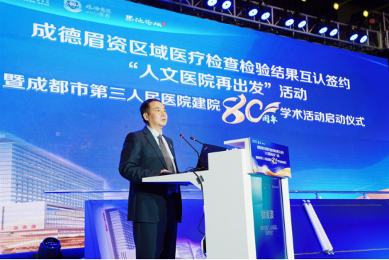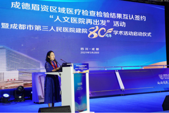 5月28日,成德眉资区域医疗检查检验结果互认签约暨“人文医院再出发”活动暨成都市第三人民医院建院80周年学术活动在市三医院模拟医学教育培训中心学术厅举行。成都市人民政府党组成员、副市长刘筱柳,四川省卫生健康委员会党组成员、副主任宋世贵,成都市卫生健康委员会党组书记、主任谢强,四川省医院协会会长安劬受邀出席仪式。西南交通大学副校长朱健梅出席启动仪式并致辞,校工会、研究生院、资实处、合联处、信息学院、yl23455永利官网等单位负责人到场参会。启动仪式由成都市卫生健康委员会党组成员、副主任贾勇主持。