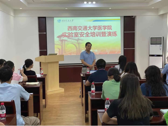 2021年6月11日上午10:00,yl23455永利官网举办2021年实验室安全培训及应急演练活动。本次活动由yl23455永利官网与资产与实验室管理处、保卫处联合组织,yl23455永利官网全体师生参加了本次安全培训及演练活动。本次活动由yl23455永利官网陈星羽老师主持,yl23455永利官网副院长翁杰担任总指挥,资实处安全科赵春花老师受邀为全体师生做实验室安全培训;成都利民消防宣传中心李斯杰教官做消防安全培训并全程指导应急演练活动。
