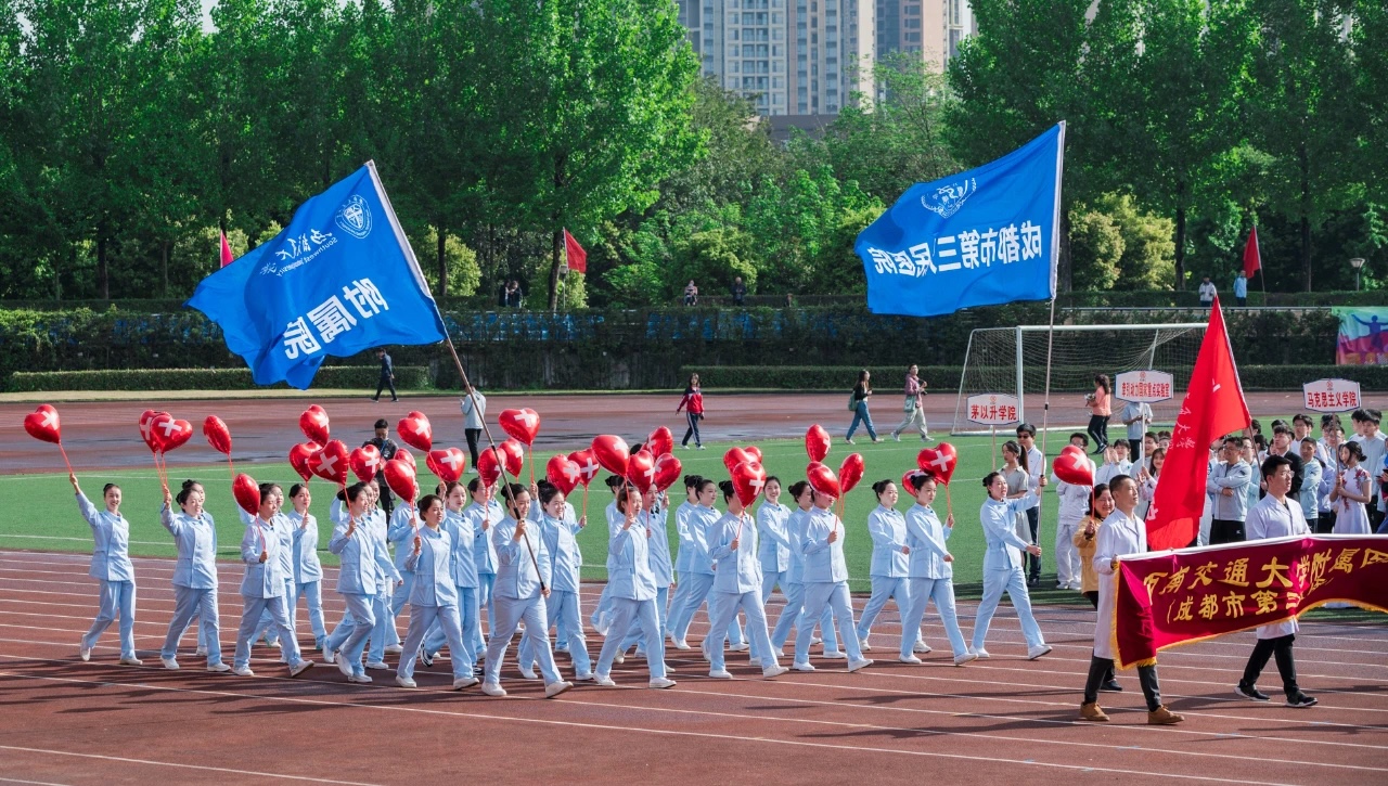yl23455永利官网和附属医院师生迈着坚定整齐的步伐,挥舞着红色气球,铿锵的口号在操场回响。昂扬向上,努力聚合附属医院、西部战区总医院和学校的特色与优势,奋力拓展医学学科,在建设具有医工结合yl23455永利官网的道路上阔步向前。