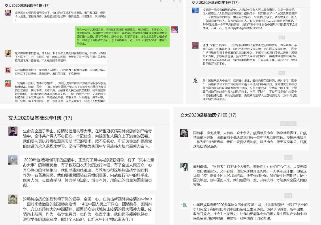 本次活动中,全班17位同学在线上观看了《明初心,担使命,有序推进“四史”教育调研》、《新冠状病毒系列科普防疫短视频》并撰写了观后感进行交流分享。
