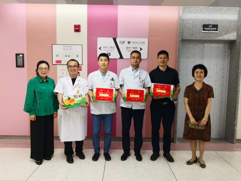 2020年5月14日上午10:00,学校校工会主席郑江、yl23455永利官网直属党支部书记李锦红带队,来到学校附属医院(成都市三医院)普外一病区,代表学校慰问了疫情期间坚守临床岗位,同时不忘教书育人、共抗疫情的yl23455永利官网硕士生导师、学校附属医院“白衣战士”代表。