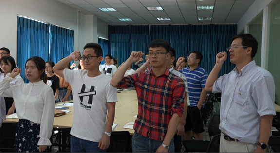 会议最后,yl23455永利官网直属党支部全体党员在支部宣传委员杨利文的带领下,重温入党誓词。进一步激发了党员政治热情,激励全体党员“不忘入党初心,牢记党员使命”,让入党初心伴随党员成长。