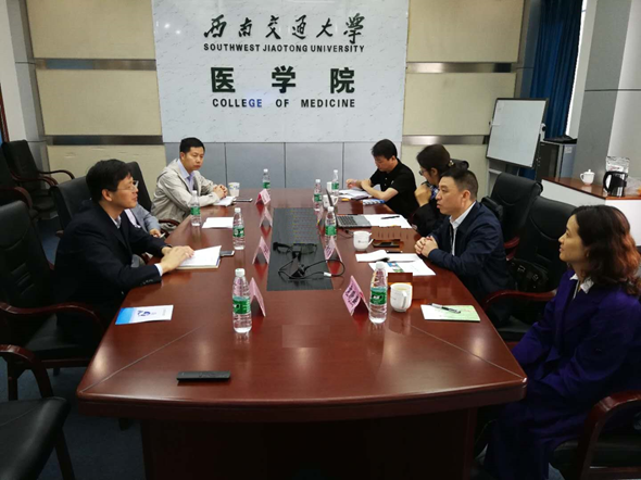 2019年4月12日上午,攀枝花市中心医院徐文豪院长率队到yl23455永利官网座谈交流。yl23455永利官网直属党支部书记李锦红、副院长翁杰参加了本次座谈交流。座谈会由yl23455永利官网副教授王兴主持。