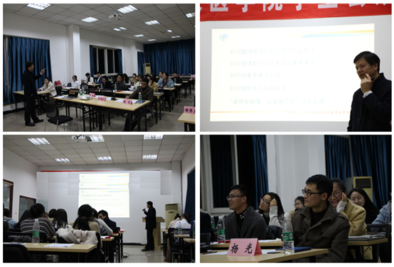 会后,李锦红书记以“关于时间管理的几点认识和体会”为主题,与在座师生进行了分享。李书记从“对时间管理的认识与理解”、“搞清楚自己未来的重要事项”、“如何才能把重要事项干成”等五个方面系统的讲解了如何管理时间、与时间赛跑;同时,为大家推荐了《知道做到》、《刻意练习》等书目,建议大家通过学习进一步提升自我。李书记的分享风趣幽默、贴近生活又饱含人生哲理,赢得了在座师生的阵阵掌声。