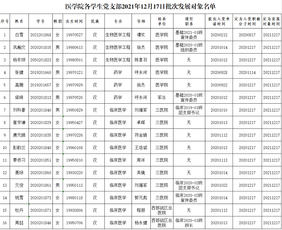 经群众意见征集、党支部委员会讨论、yl23455永利官网党委备案,现将yl23455永利官网党委2021年第三批发展对象名单公示如下: