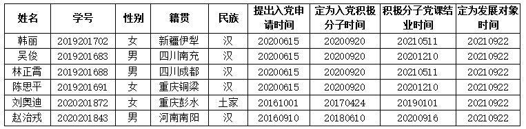 经群众意见征集、党支部大会讨论、yl23455永利官网党总支委员会会议审批,现将yl23455永利官网党总支2021年第一批发展对象名单公示如下: