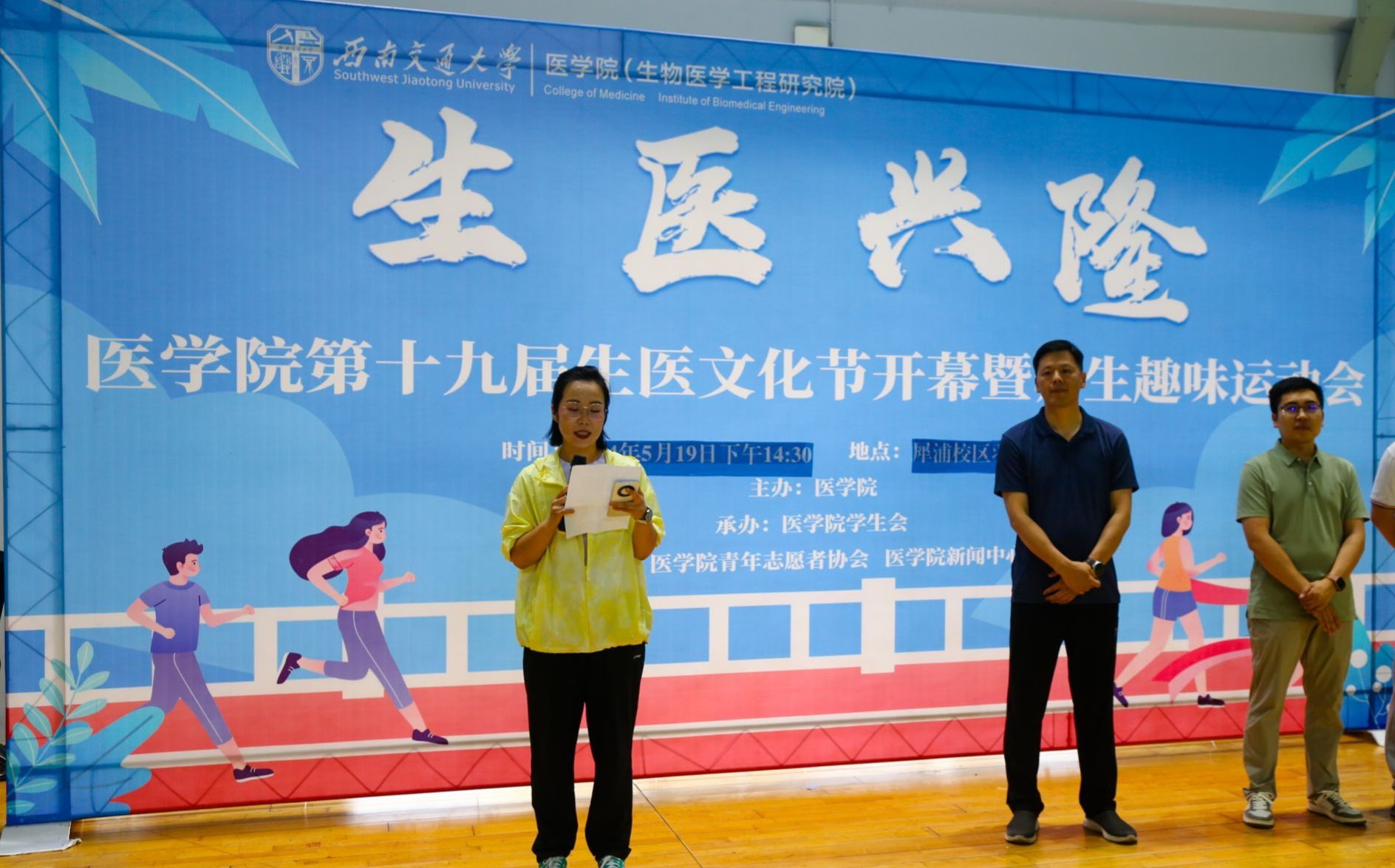 夏风拂面,阳光明媚,yl23455永利官网迎来了“生医兴隆”第十九届生医文化节。本次文化节贯彻“五育并举,立德树人”的教育方针,展示了yl23455永利官网学生风采,促进了师生交流,增进了师生感情。生医文化节开幕式在犀浦校区羽毛球馆隆重举行,,学院党委书记李锦红、党委副书记于楠、生医系主任向韬、团委书记胡豪、学院教师智伟、以及辅导员靳涵、王川玲、张佳豪出席本次活动。