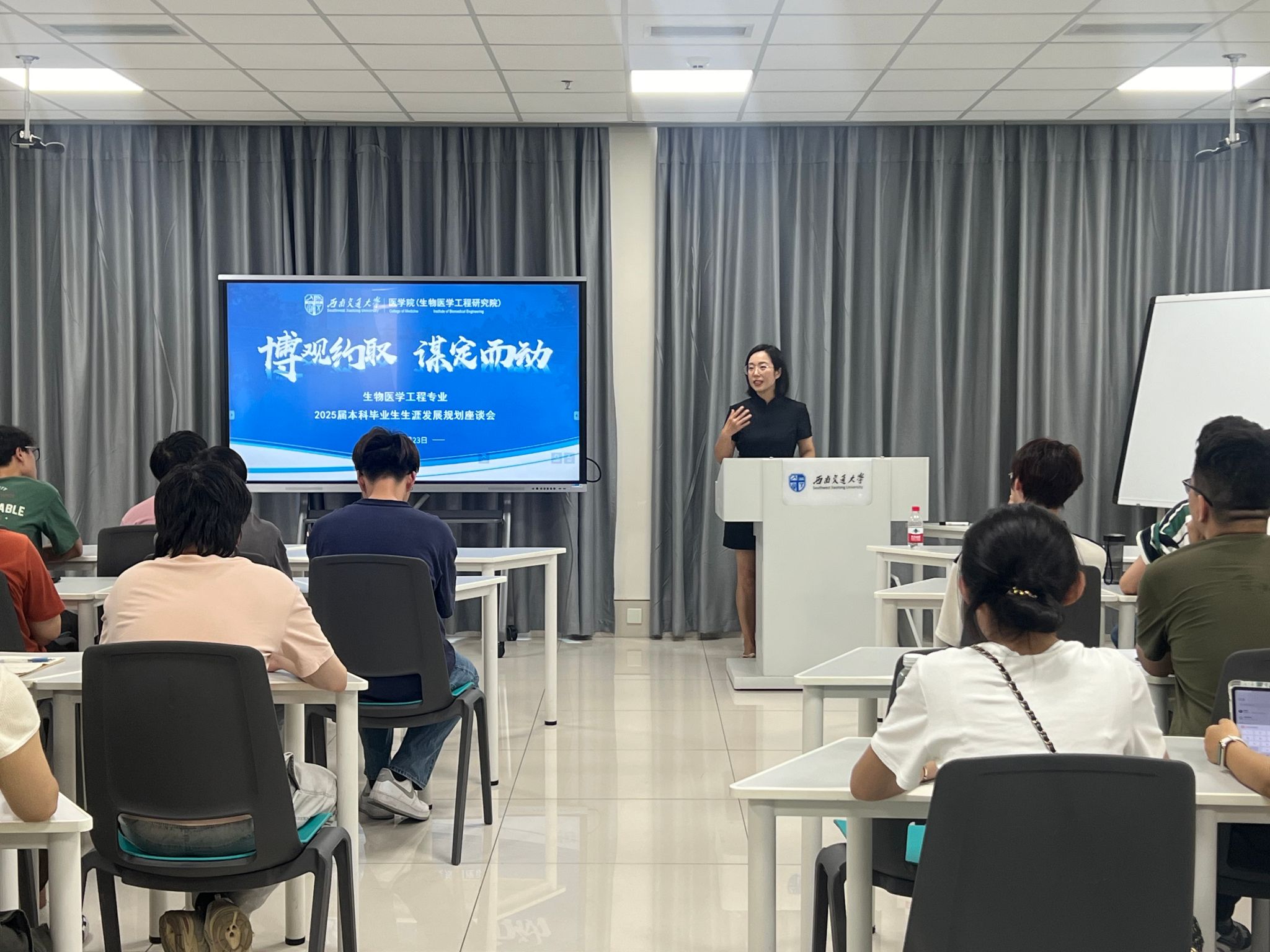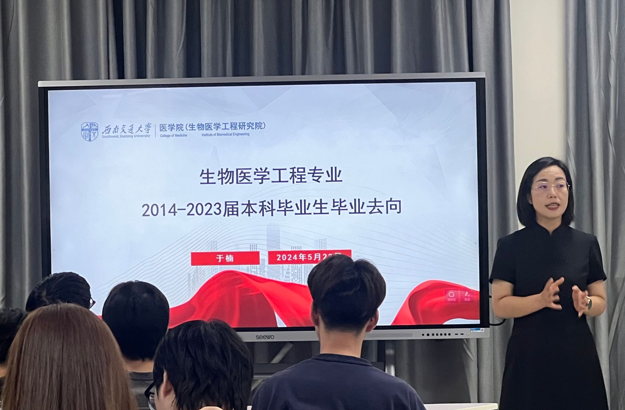 为帮助2025届同学对生物医学工程专业的毕业去向有更深入的了解,yl23455永利官网党委副书记于楠为同学们带来了生物医学工程专业近十年来的升学与就业情况分析。她通过详实的数据和案例,展示了生物医学工程专业毕业生在升学深造和就业市场上的优势和竞争力。于楠副书记还就当前就业市场的趋势和用人单位的需求进行了讲解,为同学们提供了宝贵的就业建议。