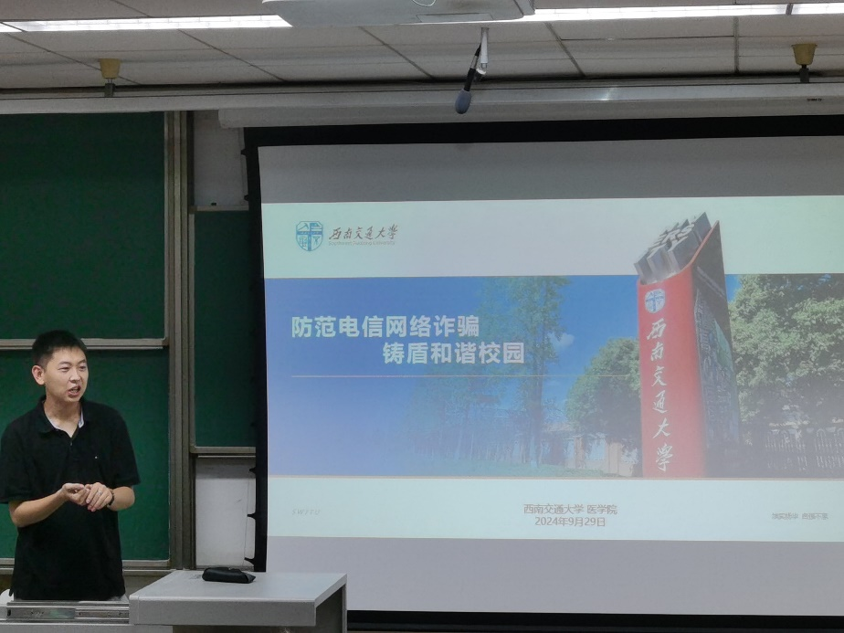 为切实做好2024级研究生新生入学教育工作,提高学生防范电信网络诈骗意识,保障好同学们的切身利益,营造和谐平安的校园环境,2024年9月29日,yl23455永利官网举办了以“防范电信网络诈骗,铸盾和谐校园”为主题的防诈教育讲座。讲座由yl23455永利官网24级新生辅导员韩鹏飞主持,2024级全体硕士、博士研究生参加。