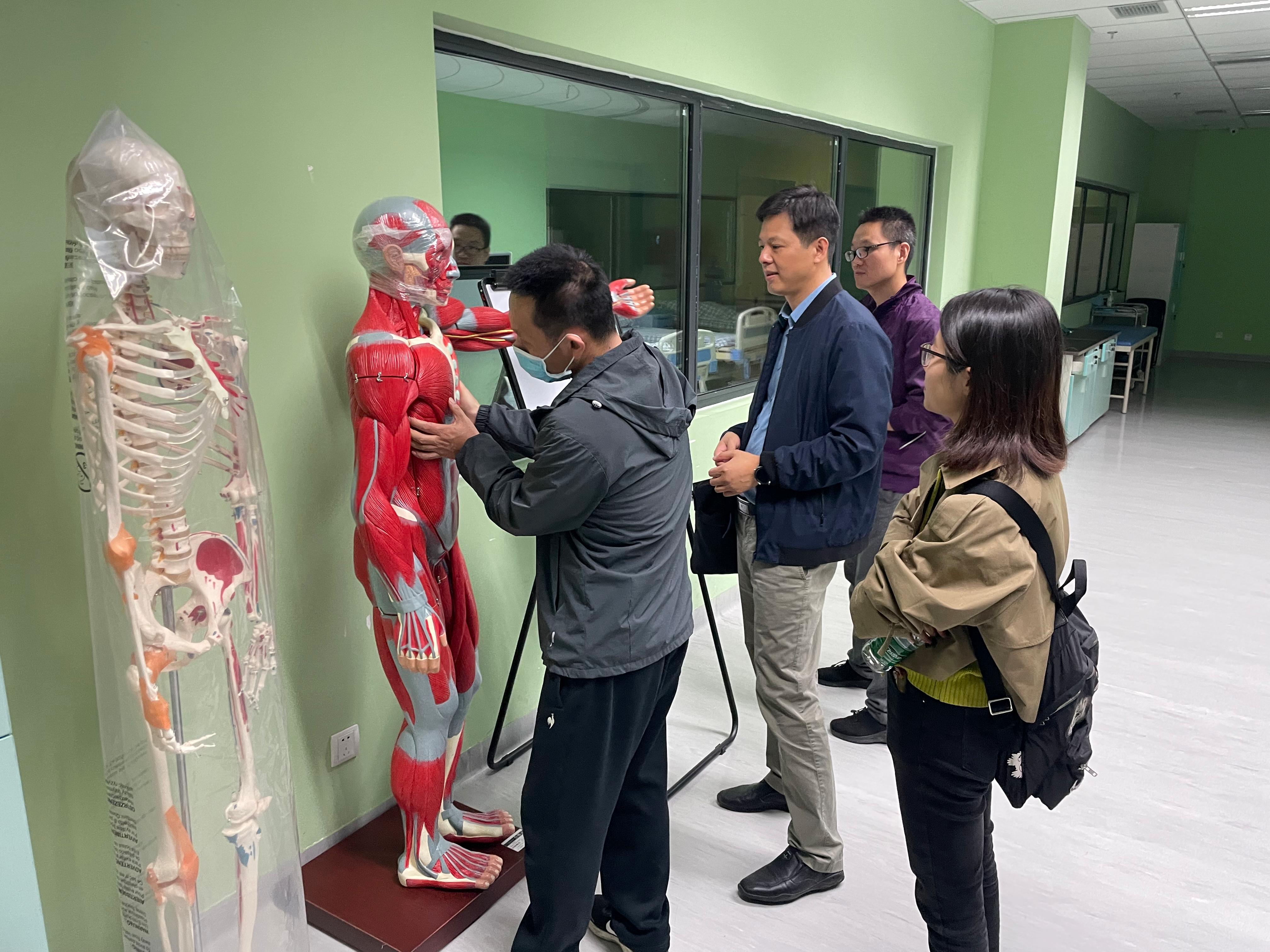 调研交流会后,与会的领导、老师们共同参观了成都市第三人民医院的模拟医学培训中心。该中心占地面积达9000平方米,设置了培训教室、模拟门诊等诸多功能的区域;拥有涵盖20多个临床医学学科专业及亚专业的教学模型、模拟教学设备,包含高级生命支持超级综合模拟人、综合模拟新生儿模型、仿真模拟产妇模型、内镜纤支镜、DXR临床思维训练系统、临床医学考试题库工作站等诸多目前国际最为顶尖的教学设备物资,能够为我院临床医学专业研究生培养提供强大的技术支持,同时也为我院生物医学工程专业学生在医疗器械、医用材料等方面的实践教学提供有力支撑。