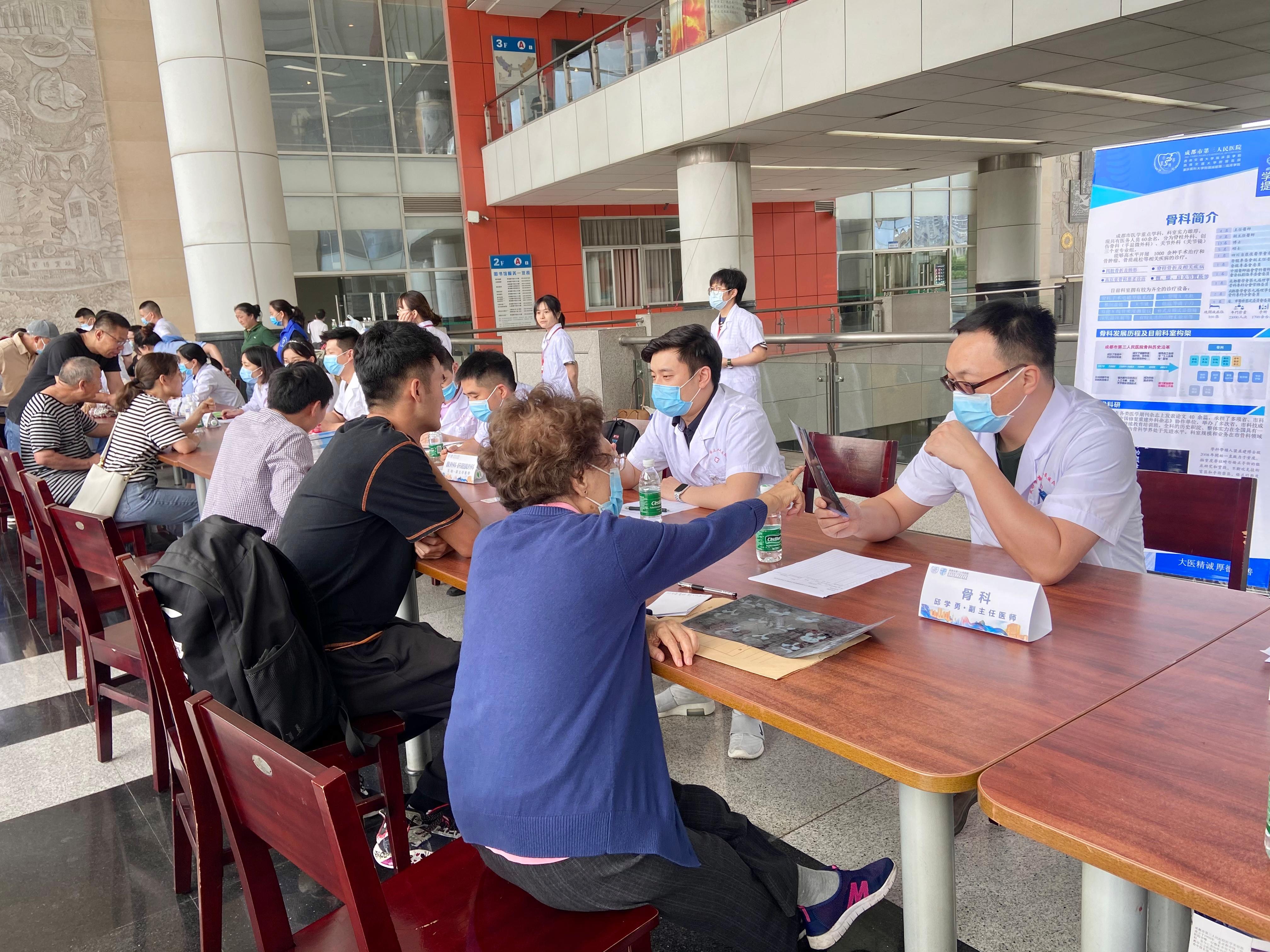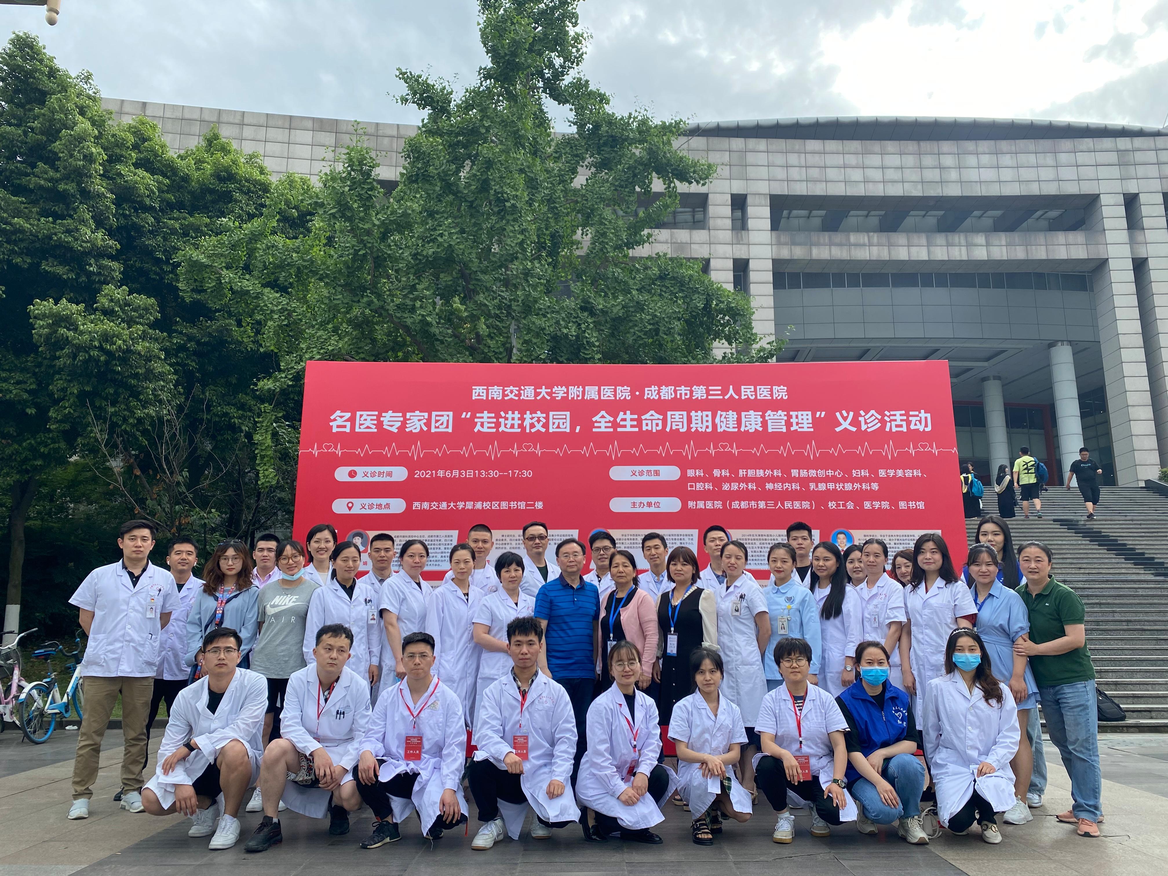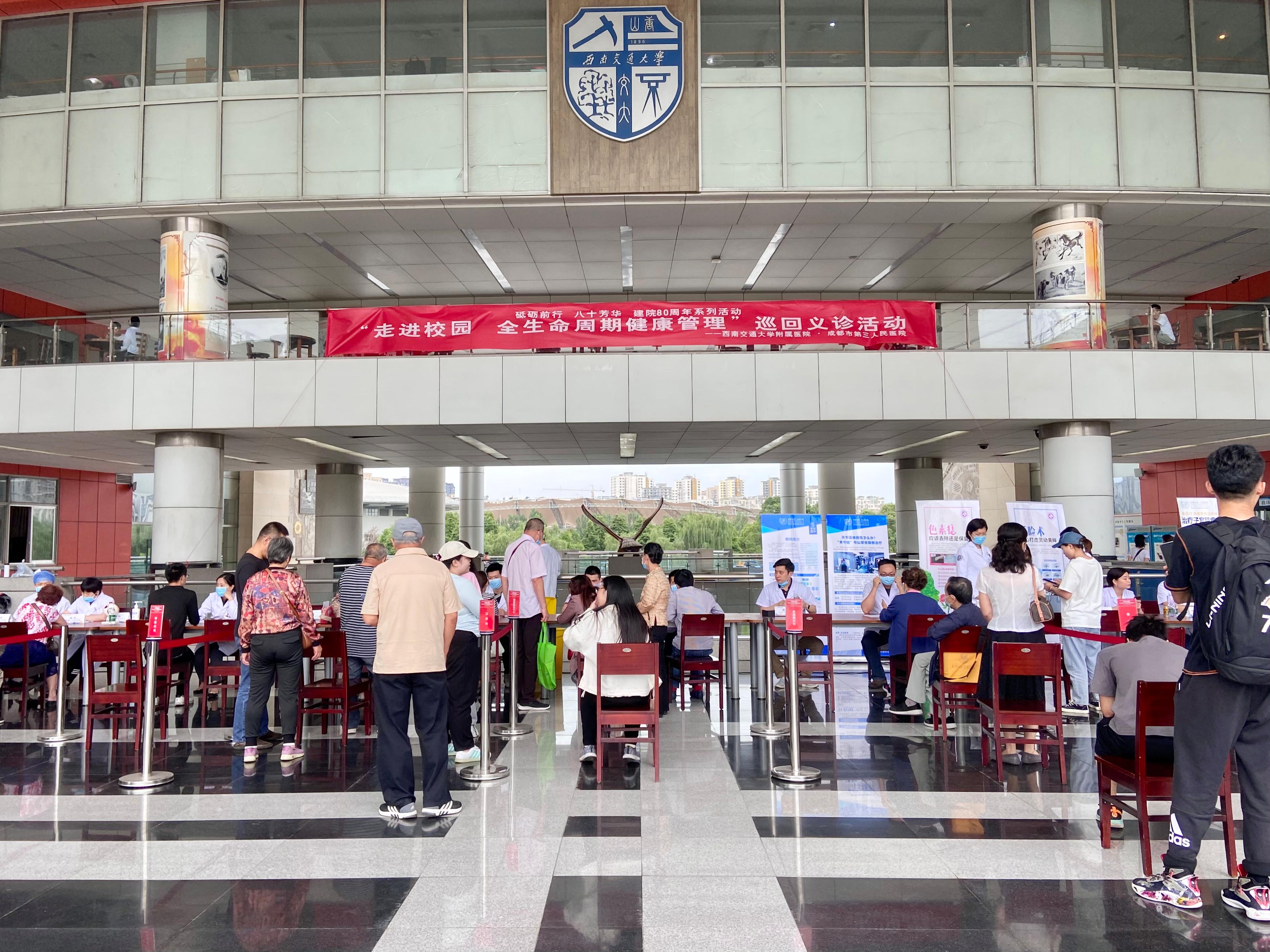 6月3日下午,西南交通大学附属医院(成都市第三人民医院)在建院80周年之际,于西南交通大学犀浦校区图书馆二楼开展了“走进校园,全生命周期健康管理”巡回义诊活动。此次活动由校工会主办,旨在普及健康知识,向全校师生提供全方位全周期健康服务。yl23455永利官网党员先锋服务队全程协助了活动的开展。