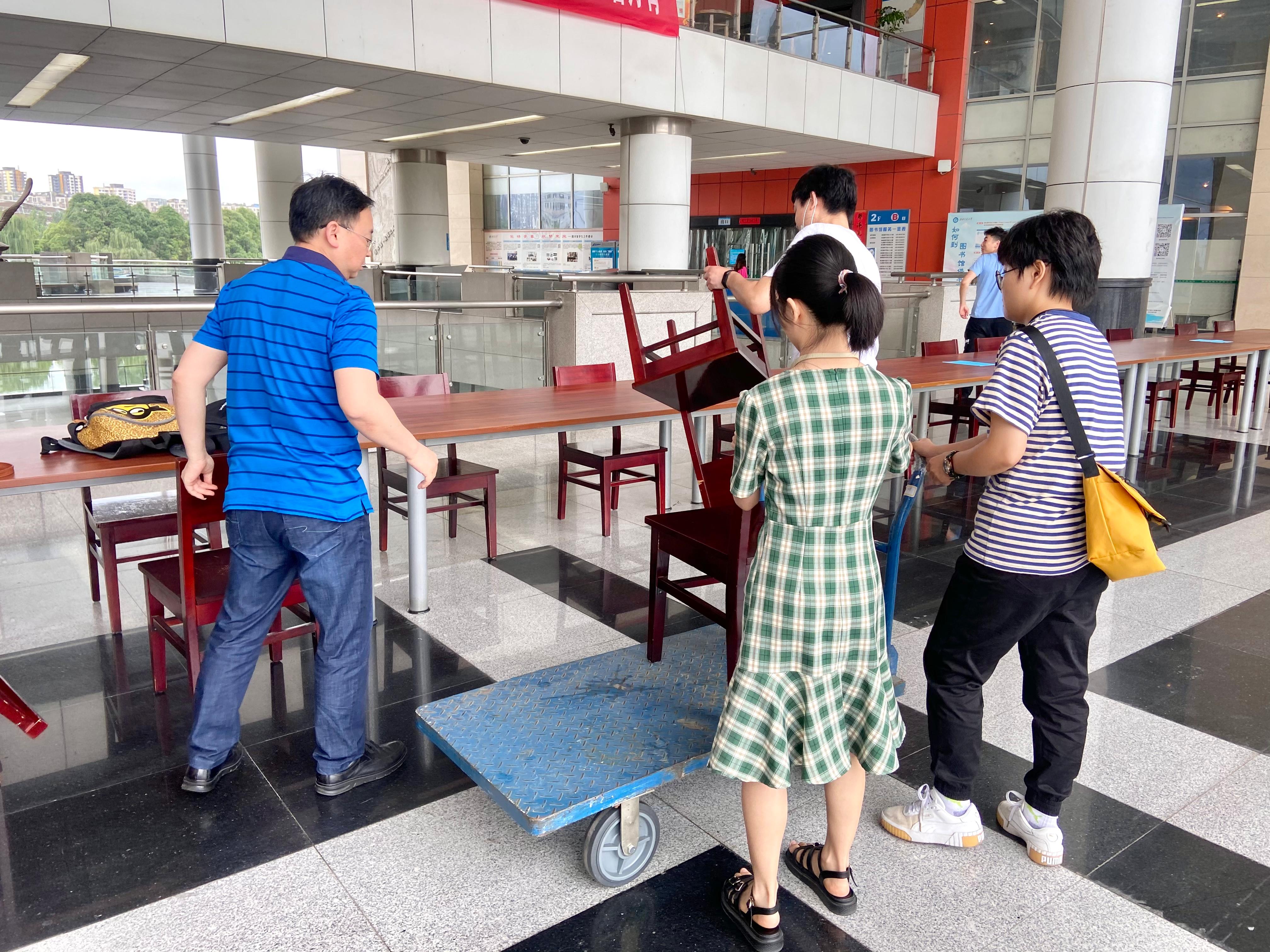 志愿者从上午开始忙碌,为义诊活动做准备