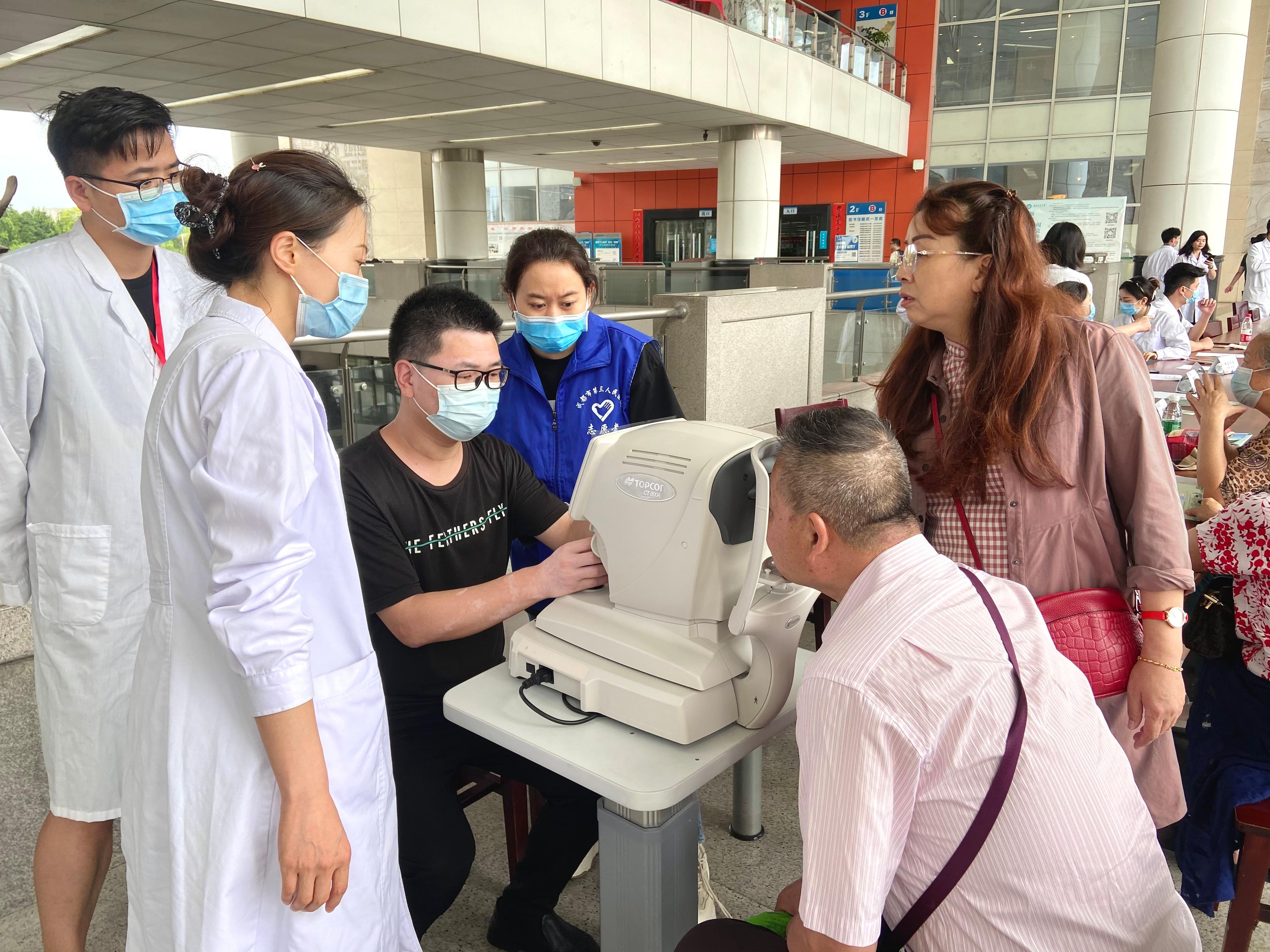 在活动现场,前来询诊的群众络绎不绝。医疗专家和志愿者尽职尽责,耐心地接待每一位前来咨询和问诊的群众。各临床科室的专家们用热情、细致的态度与咨询群众进行了亲切的交流,同时为他们提供测视力、测血压、测血糖等相关疾病的检查,并细心叮嘱注意事项。专家们针对不同个体和病症,耐心讲解健康科普知识,对疾病的预防和用药等方面进行了详细指导。