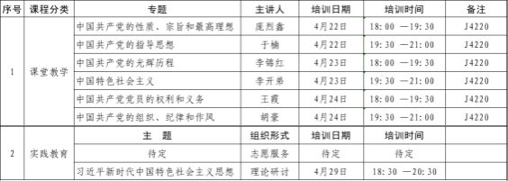 1、培训实行课堂教学、实践教学和自主学习相结合的培养方式。课堂教学由分党校聘请党课教师主讲,实践教学由各班主任组织、分小组进行,自学学习可与学生时事政策教育、党团活动等环节相结合。