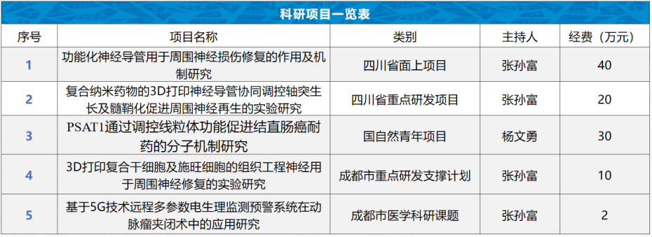 近年来,科室在基础与临床研究方面取得多项创新性进展,分别在2022年和2023年获得四川省科技厅资助以及国家自然科学基金资助,科研总经费规模超过200万元。