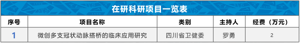 本团队依托附属医院(成都市第三人民医院)心脏大血管外科组建,团队共4人。科室目前年手术量600余例,技术力量雄厚,治疗领域广泛,是四川省内规模最大、综合实力最强的心脏大血管外科之一。
