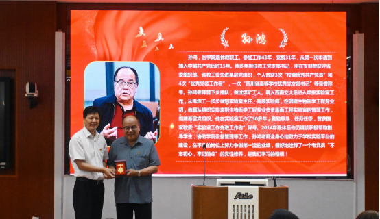 值此迎接中国共产党成立102年之际,yl23455永利官网党委特为党龄30年以上的孙鸿、屈树新两位同志定制了“光荣在党三十年”纪念章,以表达对两位同志在学校、学院发展以及党和国家教育、科研事业中所作贡献的衷心感谢和崇高敬意。