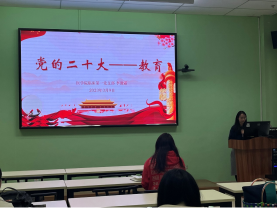 根据《yl23455永利官网2022年度基层党支部组织生活会及民主评议党员工作方案》相关安排,临床第一党支部于2023年3月9日11:00在成都市第三人民医院102教室召开了党的二十大精神专题学习会。本次学习由李傲霜同志领学,学习主题为“党的二十大——教育”,党支部全体党员参加。