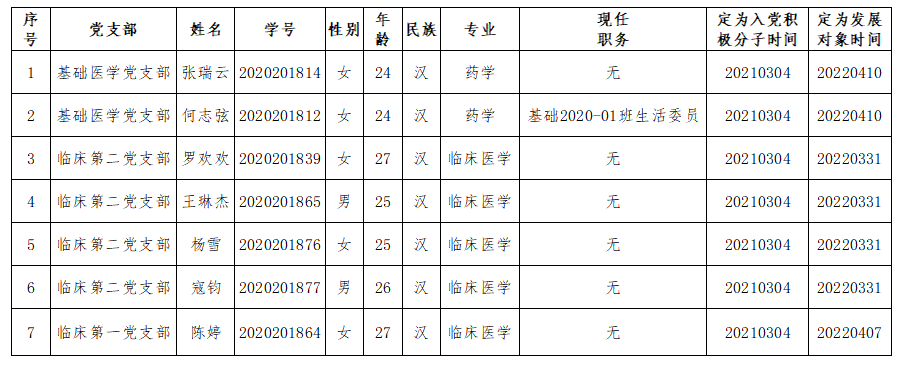 经群众意见征集、党支部委员会讨论、yl23455永利官网党委备案,现将yl23455永利官网党委2022年第一批发展对象名单公示如下: