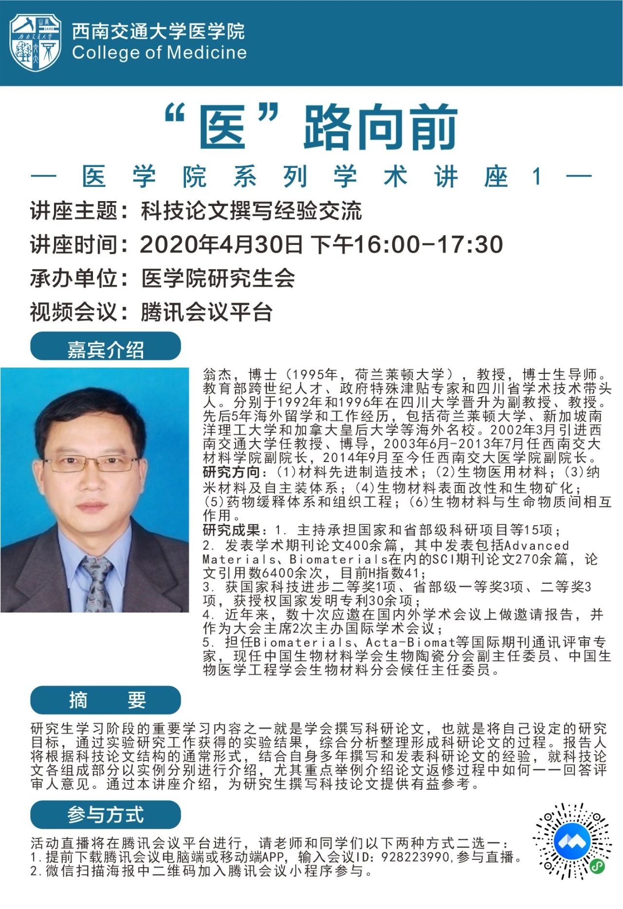 嘉宾介绍:翁杰,博士(1995年,荷兰莱顿大学),教授,博士生导师。教育部跨世纪人才、政府特殊津贴专家和四川省学术技术带头人。分别于1992年和1996年在四川大学晋升为副教授、教授。先后5年海外留学和工作经历,包括荷兰莱顿大学、新加坡南洋理工大学和加拿大皇后大学等海外名校。2002年3月引进西南交通大学任教授、博导,2003年6月-2013年7月任西南交大材料学院副院长,2014年9月至今任西南交大yl23455永利官网副院长。