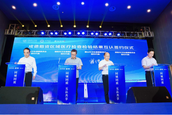 成德眉资卫生健康委相关领导举行了成德眉资区域医疗检查检验结果互认签约仪式。据悉,成德眉资《区域医疗检查检验结果互认合作协议》及《区域医疗专家资源共享协议》的共同签署,是贯彻落实四川省“一干多支、五区协同”战略部署及《成德眉资同城化发展暨成都都市圈建设三年行动计划(2020-2022年)》要求,提升基层医疗人才水平、构建和谐医患关系的重要举措,标志着同城化发展又迈进了一大步。