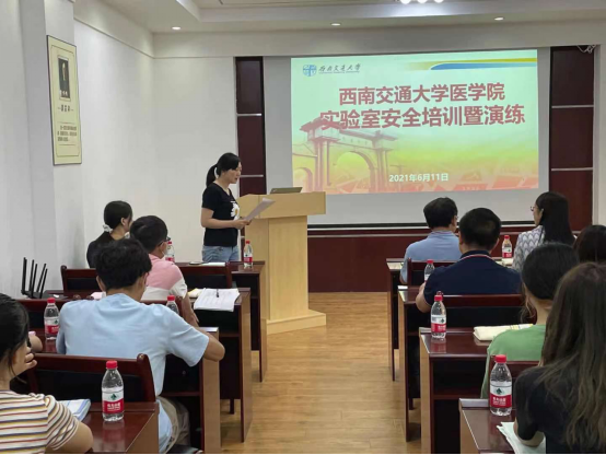 2021年6月11日上午10:00,yl23455永利官网举办2021年实验室安全培训及应急演练活动。本次活动由yl23455永利官网与资产与实验室管理处、保卫处联合组织,yl23455永利官网全体师生参加了本次安全培训及演练活动。本次活动由yl23455永利官网陈星羽老师主持,yl23455永利官网副院长翁杰担任总指挥,资实处安全科赵春花老师受邀为全体师生做实验室安全培训;成都利民消防宣传中心李斯杰教官做消防安全培训并全程指导应急演练活动。
