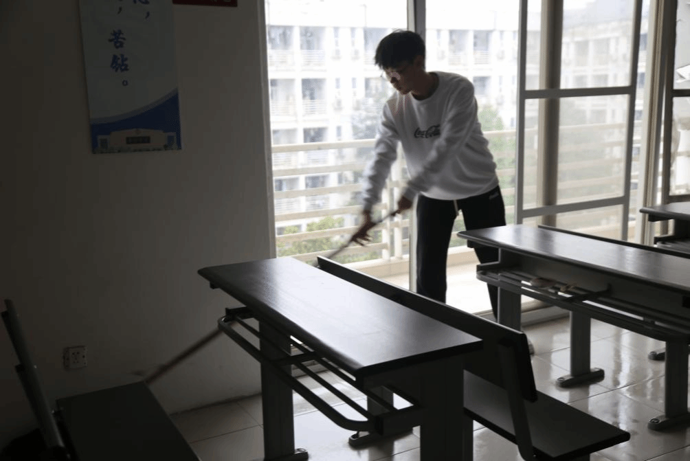当日下午,同学们自发组织,携带清洁工具,对自习室进行了全面而细致的清扫。他们用心地打扫每一个角落,不放过任何一处污渍和尘埃,确保自习室的每一寸地方都焕然一新。经过大家的共同努力,原本稍显杂乱的自习室焕发出了新的生机与活力,变得整洁有序,为同学们营造了一个更加舒适宜人的学习环境。