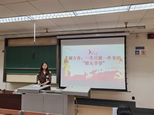 第三个故事是由基础医学党支部的张婉琳同志分享的《“糖丸爷爷”顾方舟——一生只做一件事》。舍己幼,为人之幼,这不是残酷,是医者大仁。为一大事来,成一大事去。功业凝成糖丸一粒,是治病灵丹,更是拳拳赤子心。你就是一座方舟,载着新中国的孩子,渡过病毒的劫难”这是感动中国人物“顾方舟”的颁奖词。顾方舟我国脊髓灰质炎疫苗研发生产的拓荒者、科技攻关的先驱者。他研发的脊髓灰质炎疫苗“糖丸”护佑了几代中国人的生命健康,使中国进入无脊髓灰质炎时代。1957年到2000年,消灭脊髓灰质炎这条不平之路,顾方舟艰辛跋涉了44年。而当事人,顾方舟却只是淡淡的说到“我一生只做了一件事,就是做了一颗小小的糖丸。”