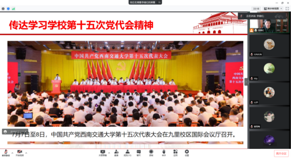 为积极响应学校党委总体部署,以大会精神为指引凝聚全院师生共识,以大会提出的目标任务为导向推进yl23455永利官网工作高效开展,根据《中共西南交通大学委员会关于认真学习宣传贯彻学校第十五次党代会精神的通知》要求,yl23455永利官网党委结合学院实际,制定了分类别、分层次、阶段性、针对性的工作方案。