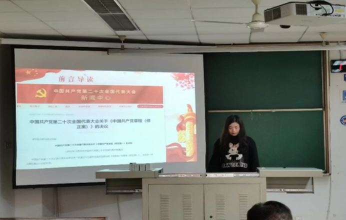 为深入学习贯彻党的二十大精神,进一步鼓励全体党员为全面建设社会主义现代化国家而团结奋斗,yl23455永利官网临床第一党支部于2022年11月10日下午17点在九里校区逸夫馆4404A教室开展了“解读《中国共产党章程(修正案)》”的主题党日活动。活动由彭韵兰同志主持,全体党员及入党积极分子参加。