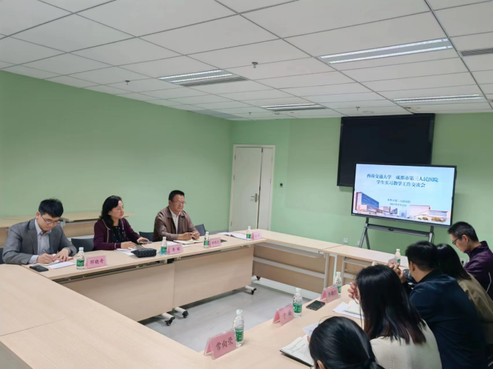 于楠副书记介绍了学院临床医学专业研究生的基本学情、日常管理、就业等情况,并就培养过程中存在的问题与成都市第三人民医院的领导们进行了深入交流探讨了临床医学研究生管理中如何充分发挥学院、医院的双向管理作用的问题。