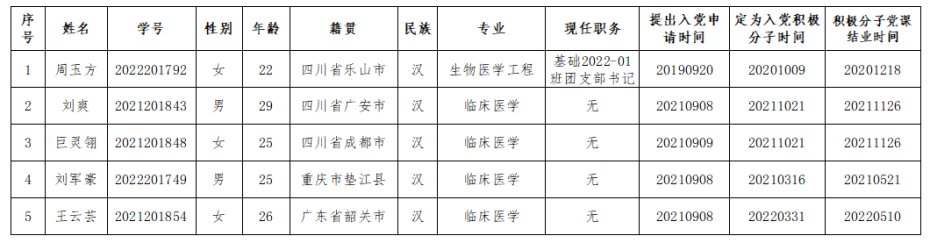 经班团组织推优、群众意见征集、党支部委员会讨论,现将yl23455永利官网党委2023年第一批发展对象预备人选名单公示如下: