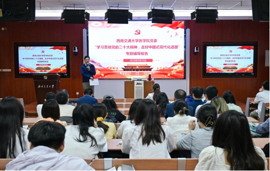 5月25日下午,yl23455永利官网党委召开学习贯彻习近平新时代中国特色社会主义思想主题教育领导班子专题读书班(扩大)暨“学习贯彻党的二十大精神,走好中国式现代化道路”专题辅导报告会。会议由学院党委书记李锦红主持,学院领导班子及全体教职工、学生党员参会。马克思主义学院马先睿副教授为大家作《走好中国式现代化道路》专题辅导报告。