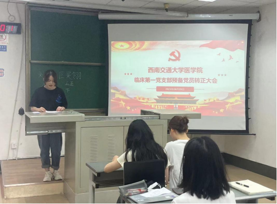 学习会后,临床第一党支部召开了关于陈婷同志的转正大会和关于接收巨灵翎、刘爽同志为预备党员的党员发展大会。张碧花同志对新发展及转正的党员同志提出了“主动学习党的理论知识,在学业、科研等各方面起到模范带头作用,模范遵守校规校纪,主动为同学们做实事”等几点要求。