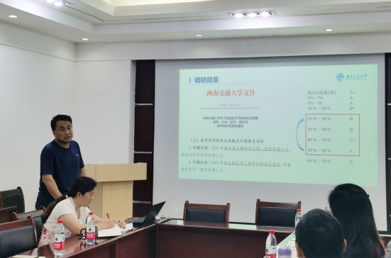 院长助理苟雪介绍了《落实立德树人根本任务,yl23455永利官网生物医学工程人才培养存在的问题与改进措施》调研课题,详细分析了生物医学工程专业本科课程设置、学科定位等调研结果,并在调研基础上形成了新的生物医学工程本科专业培养方案。