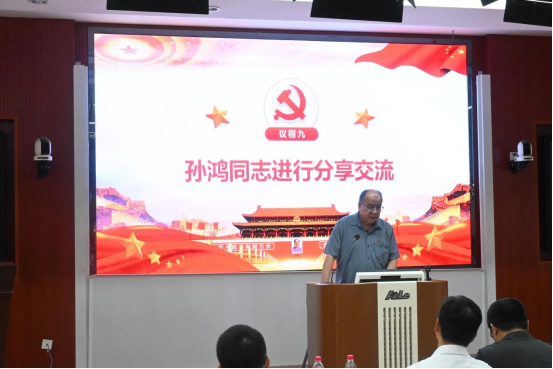 宣誓后,孙鸿同志结合个人经历和入党历程,为全体党员们讲了一场生动难忘的党课。孙鸿同志用他15年曲折而坚定的入党历程,用他一心一意为党和国家事业贡献力量的实际行动,诠释了一个老党员信仰如山初心如磐,使命在肩,一生践行”的党性修养 他告诫全体党员:“荣誉是过去式,入党是永远的现在进行时。”