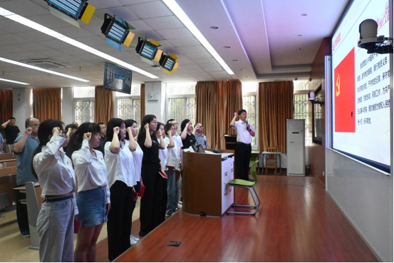 2023年6月29日下午,yl23455永利官网于九里校区逸夫馆4105召开党员大会,大会包括yl23455永利官网党委2021-2023年“两优一先”表彰仪式、新发展党员宣誓、全面从严治党工作会等三个阶段。yl23455永利官网全体党员参会,会议由党委副书记于楠主持。